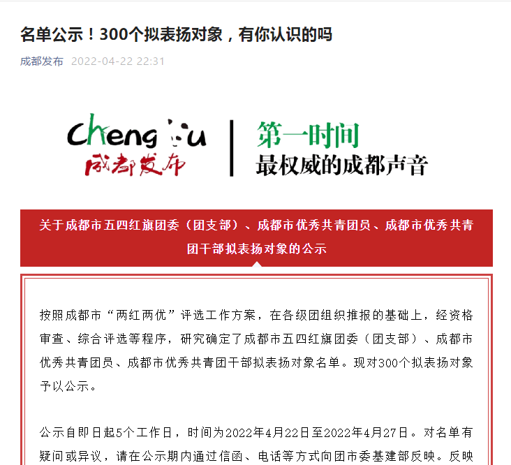 喜報(bào)我公司楊春鋒同志在成都市“兩紅兩優(yōu)”評(píng)選工作中,被評(píng)為成都市優(yōu)秀共青團(tuán)員,現(xiàn)于“成都發(fā)布”官方平臺(tái)進(jìn)行公示。楊春鋒總經(jīng)理助理?xiàng)畲轰h同志,于2016年畢業(yè)于四...